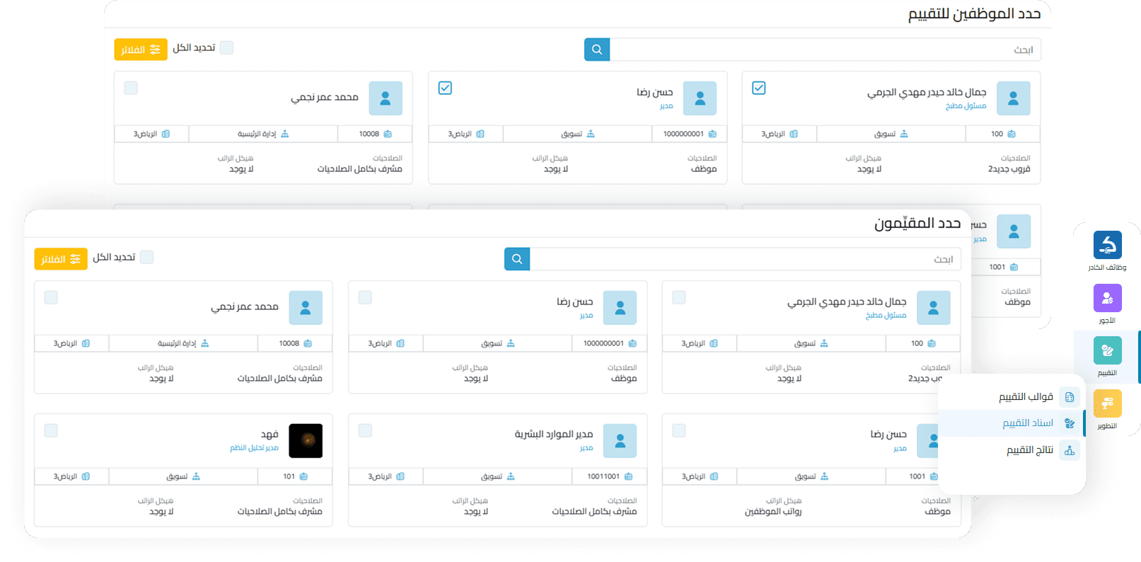 تحديد الموظفين والمقيّمين وتوزيع الأدوار بمرونة عالية.