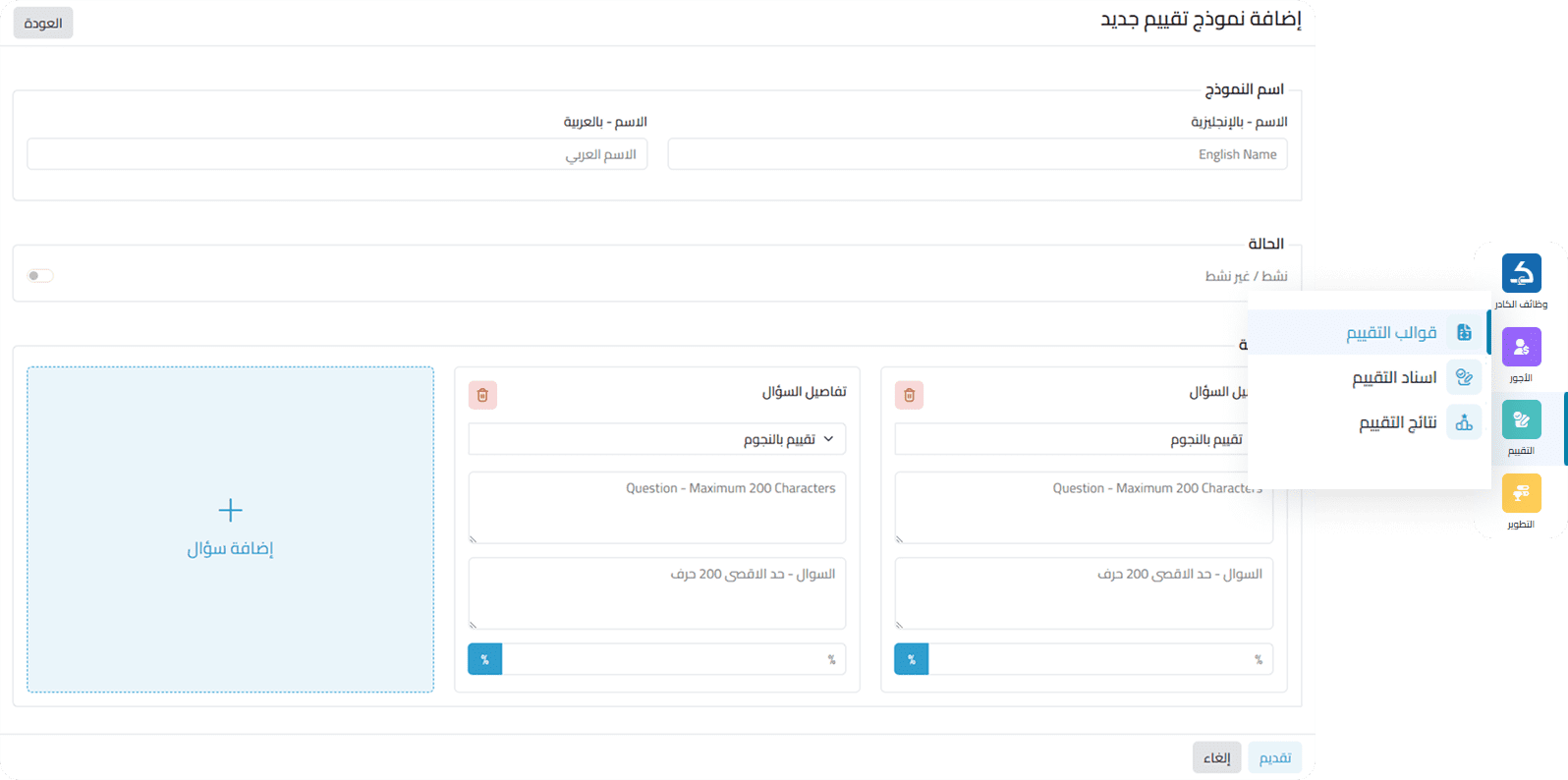 إعداد نماذج تقييم مختلفة تناسب احتياجات الأقسام والوظائف.